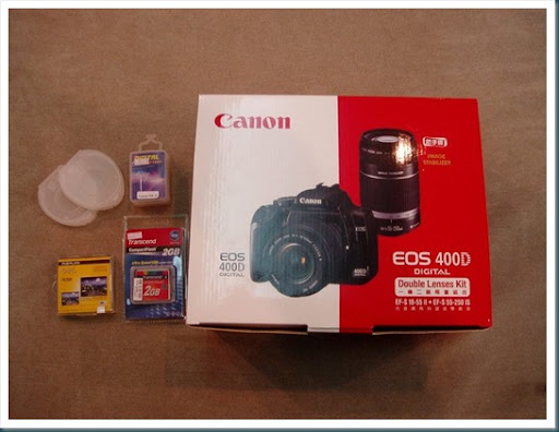 以及重頭戲:400D 機身與兩顆鏡頭——EF-S 18-55mm II + EF-S 55-250mm IS!
